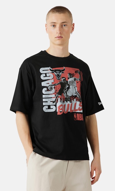 New Era NBA flamtryck överdimensionerad t-shirt Chicago Bulls svart röd