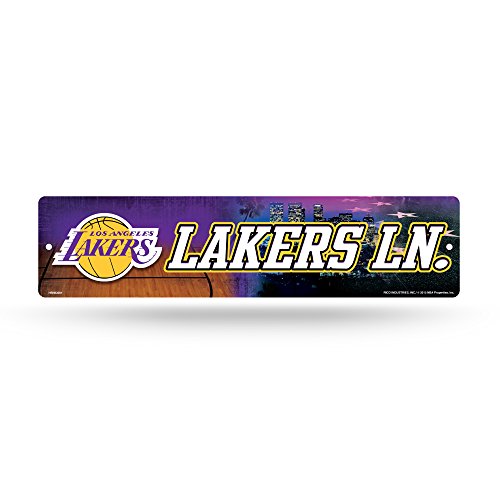 Rico Industries NBA Los Angeles Lakers Home Décor Metal Street Sign (4" x 15") - Great for Home, Office, Bedroom, & Man Cave - Made