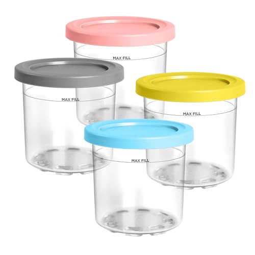 4-pack behållare och lock för Ninja NC300EU NC300EUCP NC302 CREAMi glassmaskin, creamy dessertmaskin, isbehållare, reservbehållare tillbehör, BPA-fri och diskmaskinssäker
