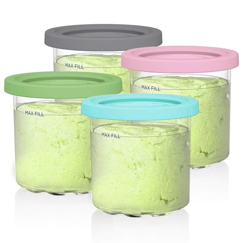 vione Creami Behållare för Ninja Creami NC300EU, 4 stycken glassmaskinstillbehör för Ninja Creami Ice Maker, glassmaskin bägare kompatibel med Ninja glassmaskin NC299EU NC300EU NC301EU (NC300-4-pack)