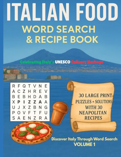 Italian Food Word Search and Recipe Book: 30 Large Print Puzzles with Solutions + 30 Classic Neapolitan Recipes - Fun and Easy Cooking Gift