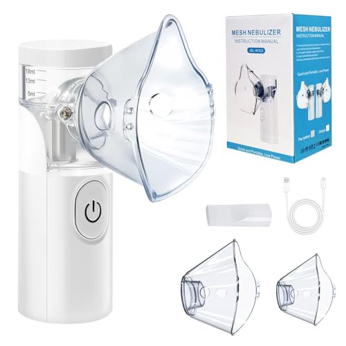 Easy@Home tyst bärbar nebulisator: elektrisk nätinhalator med 2 masker för barn och vuxna USB uppladdningsbar