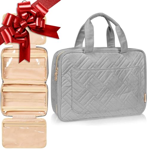 Sminkväska, hängande necessär, vikbar, med bärhandtag, för kvinnor och män, Ljusgrå, L, Toalettväska
