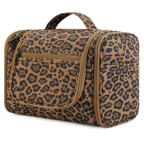 WANDF stor necessär, hängande necessär för kvinnor, necessär för män, stor, necessär för campingresor för barn, kvinnor, män (brun leopard)
