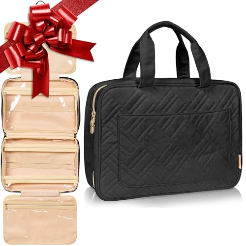 Stor hängande necessär, resesminkväska, kosmetisk organisatör för kvinnor och flickor, Svart (stor)