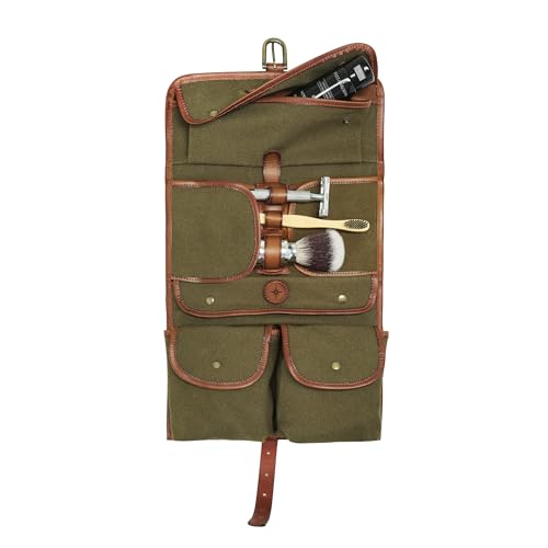 DRAKENSBERG Necessär för män att hänga "Sid" – vikbar vintage necessär av kanvas och läder, många fack, hållbar, Olivgrön, Necessär