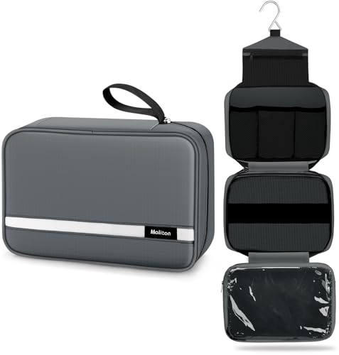 Maliton toalettväska för män och kvinnor resa necessär hängande toalettväska hygienorganisatör med 4 fack vattentät badrum duschväska stor toalettartiklar resväska (grå)