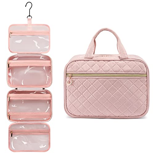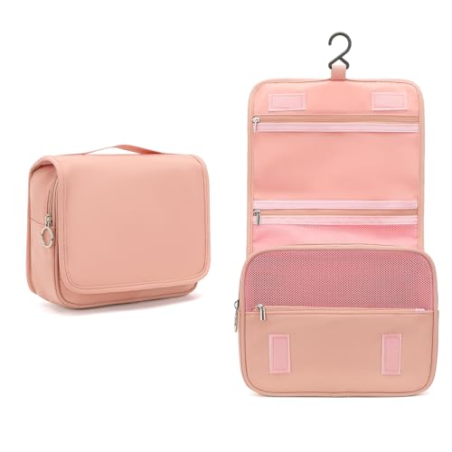 LOVEVOOK Necessär dam, kan vikas, tvättas och hängas upp, stor sminkväska med 360° roterbar krok, Rosa C, M