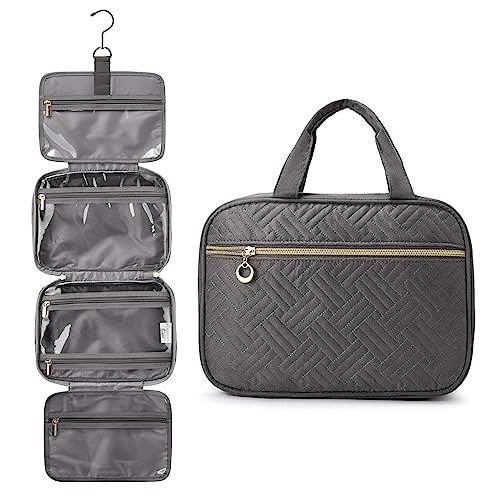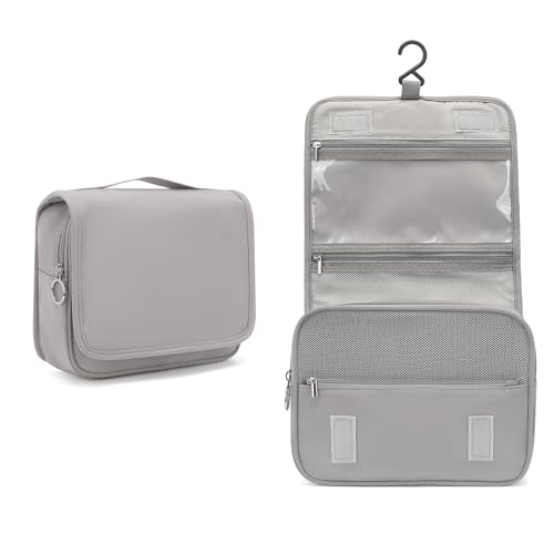 Kono Hängande necessär för resor för män och kvinnor, vattentät multifunktionell toalettartiklar sminkväska med hängande krok, sminkväska för kvinnor i full storlek behållare, Grå, Klassisk, enkel,