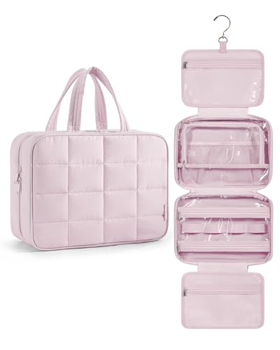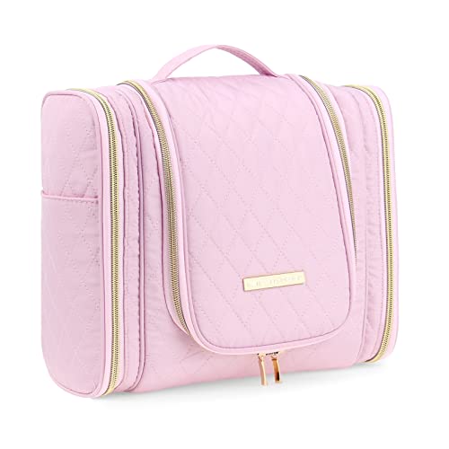 BAGSMART Hängande necessär, sminkväska, damnecessär, stor necessär för kvinnor, sminkväska, organiserare för resesmycken, rosa, m