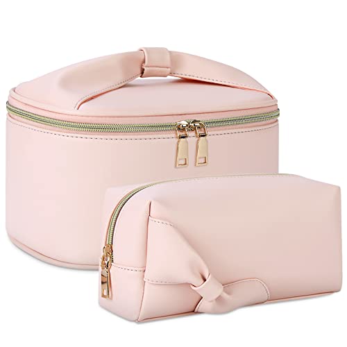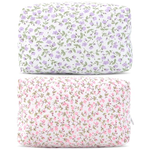 ARVALOLET Sminkväska, 2 stycken, quiltad sminkväska med dragkedja, necessär, sminkväska av bomull, rosa, Fashion