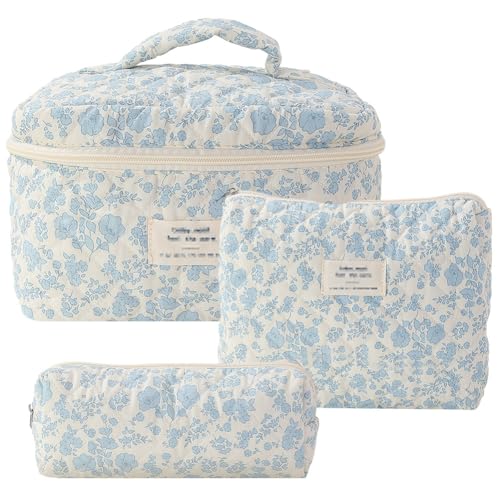 GSenhui Sminkväskor för kvinnor och flickor, resenecessärer i set, kviltad necessär med blommönster, sminkväska med estetiska blommor, 3 stycken, A11