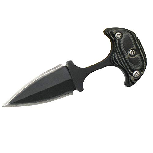 Omesio Neck Knife Knife, tillverkad av D2 stål, liten bladkniv med fast G10-handtag med ett Kydex-fodral och har en bladlängd på 7,6 cm (Svart)