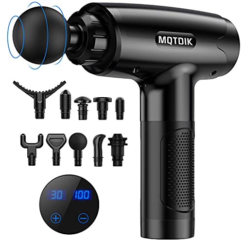 Massage Gun Deep Tissue, Percussion Muscle Massager Gun, 30 Speeds Quiet Handheld Massager for Muscle Neck Back Shoulder, LCD Touch Screen with 10 Heads
