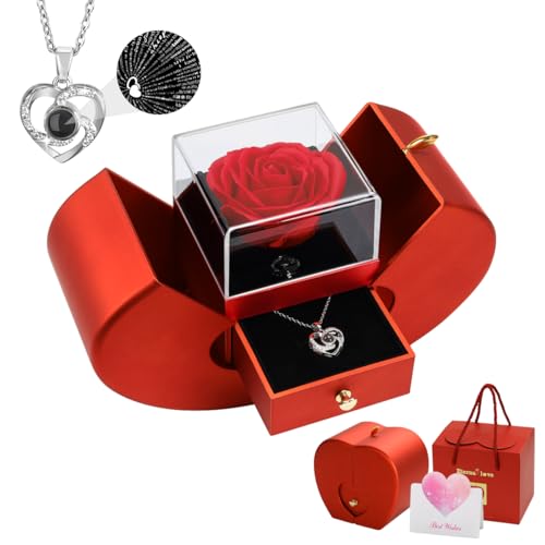 Emibele Mother's Day Preserved Red Rose for Women Mom Grandma, Eternal Flower Rose Box with Heart Necklace I Love You 100 Languages, Gifts for Wife Girlfriend Her on Valentines Birthday Anniversary