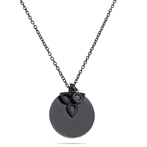 Tamaris Flower Necklace – svart – halsband med plätt- och blomhängen av rostfritt stål