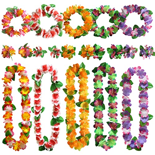 AWCIGG 20 Piece Hawaiian Flower Necklace Set 10 Hawaiian Lei Bracelets 5 Hawaiian Headbands och 5 Hawaiian Necklace för Summer Luau Beach Party Dekorationer Performance Kostym Tillbehör