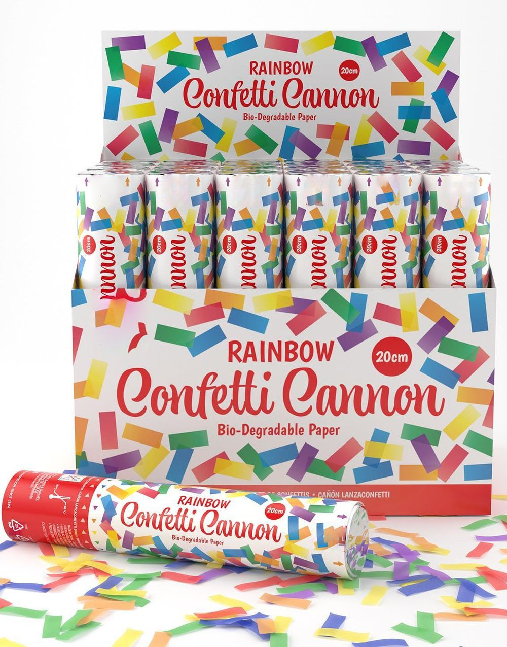 1 st liten konfettikanon med regnbågsfärgad konfetti - 20 cm (biologiskt nedbrytbar)