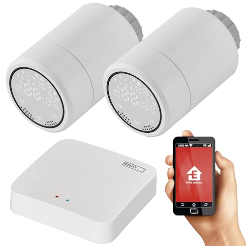 EMOS GoSmart Set – Smart Home radiatortermostat (2x) ZigBee Gateway (1x) med app – IP-termostat för värmesystem kompatibel med Tuya, Smart Life, Google Assistant och Alexa – inkl. Smart Home Hub