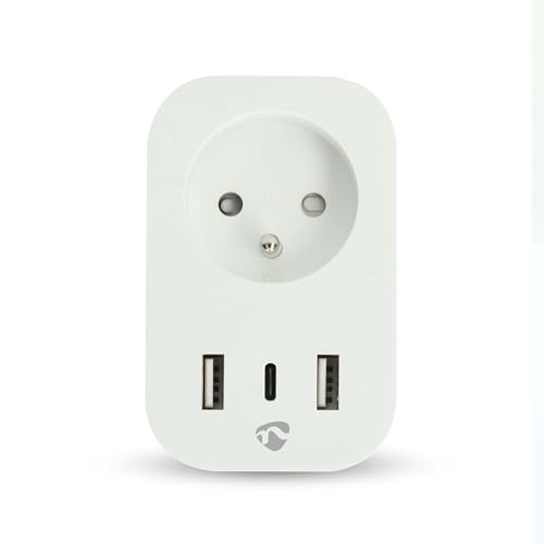 Nedis SmartLife Smart kontakt – Wi-Fi – effektmätare – 3680 W – Frankrike/typ E (CEE 7/6)/1 x USB-C / 2 x USB – 0–55 °C – Android/IOS – vit – 1 styck