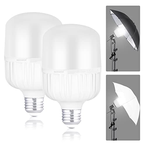 Neewer Set med 2 LED-lampor E27 35W, 3450 lumen/5700K/CRI 93+/1 5000h livslängd, belysning för videofotografering, icke-flimmer/icke-dimbar 350 W glödlampa, CE&UKCA-certifierad