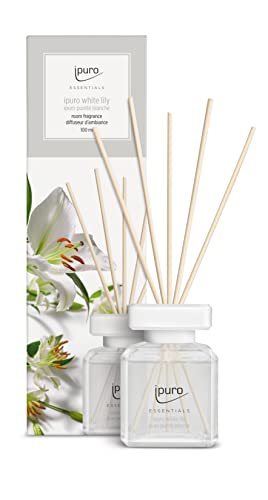 ipuro - Essentials Rumdoft White Lily 100 ml | Rumfräschare med persika, liljekonvalj, jasmin, nejlika, vit mysk och cederträdoft arom | diffuser med ätpinnar | luftrenare för lägenhet