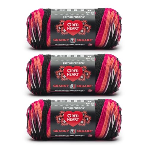 Rött hjärta allt-i-ett mormor fyrkantigt svart – nejlika kodgarn – 3-pack med 250 g/8,8 oz – 100% akryl – #4 kamgarn (medium) – 381 m/417 meter – för stickning, virkning och amigurumi