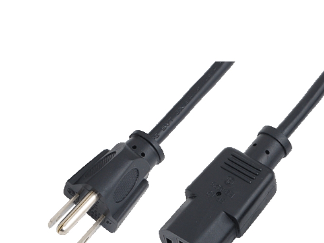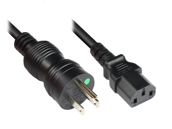 Nätkabel Amerika/USA nätkontakt typ B (NEMA 5-15P) Hospital kvalitet till IEC-uttag C13 (rak) – UL/CSA – AWG18 – svart – 1 m