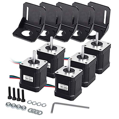 Mcwdoit 5 st Nema 17 stegmotor, bipolär, 2.0 A, 83.6oz.in, (59 Ncm), 47 mm, 4-kabel med 1 m 4-stiftskabel, +5 st Nema 17 monteringsfästen för 3D-skrivare/CNC