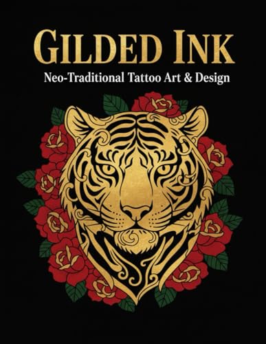 Gilded Ink: A Neo-Traditional Tattoo Coloring Book for Adults Featuring Bold Designs of Skulls, Roses, Animals, and Sacred Hearts