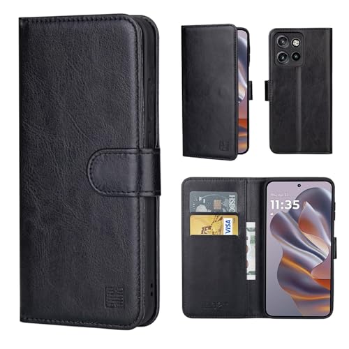 32nd PU Läder Plånbok Flipfodral Skal för Motorola Edge 50 Neo, med RFID-Blockering Kortplats, Magnetisk Stängning och Inbyggt Stativ - Svart