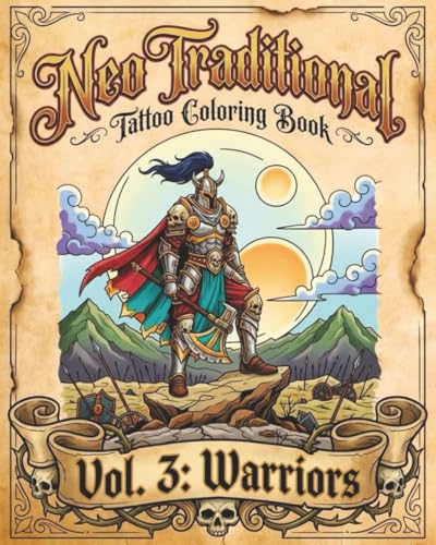 Neo Traditional Tattoo Coloring Book | Vol. 3: Warriors: Legendary Warriors, Bold Designs - Tattoo Flash Line Art Coloring Book