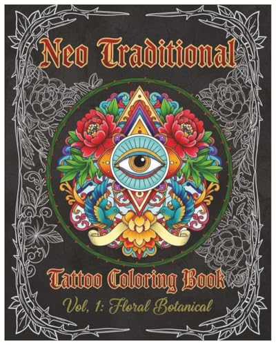 Neo-Traditional Tattoo Coloring Book: The Art of Bold Lines & Ornate Designs: 40 Vintage-Style Illustrations