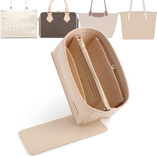 Doxo Väskorganisatör och bottenförstärkare i kombination, organisatör för toteväskor – passar LV Speedy 25, NeoNoe MM, Noé, Book Tote S, C.oach City 30, Longchamp Le-Pliage S med flera (M, beige)