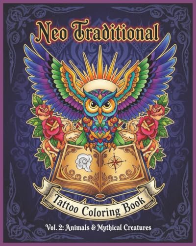 Neo Traditional Tattoo Line Art Coloring Book | Vol. 2: Animals & Mythical Creatures: Bold Animal Designs and Legendary Beasts for Tattoo Lovers and Art Enthusiasts