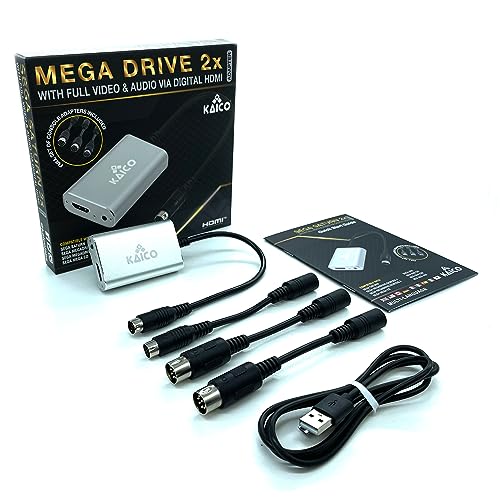 Kaico Megadrive 2 x line Doubler HDMI-adapter för användning med Sega Saturn, Megadrive/Genesis och SNK Neo Geo – HDMI-omvandlare som stöder RGB och kompositutgång – allt-i-ett x2 Line Doubler