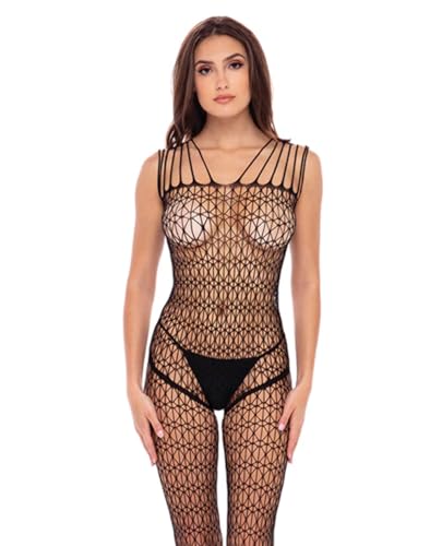 Rene Rofe Lingerie Neo Geo Crotchless Bodystocking Blk Black One Size