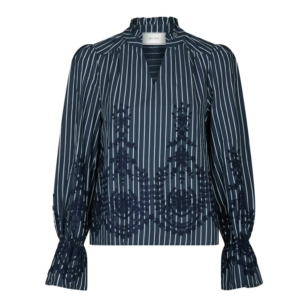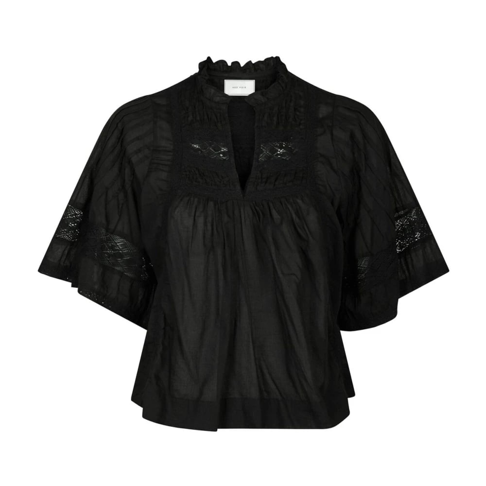 Neo Noir, Blusar & Skjortor , Dam, M, Bomull, Elegant svart blus med broderade detaljer