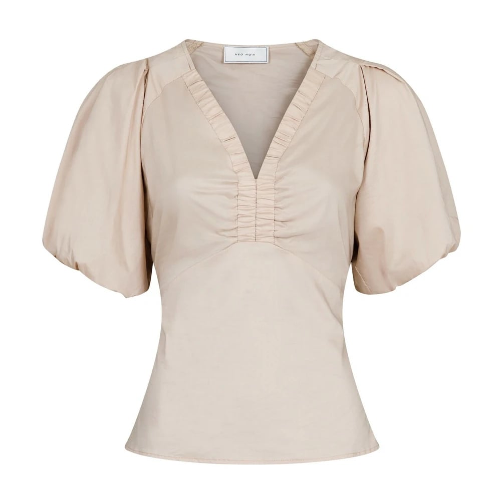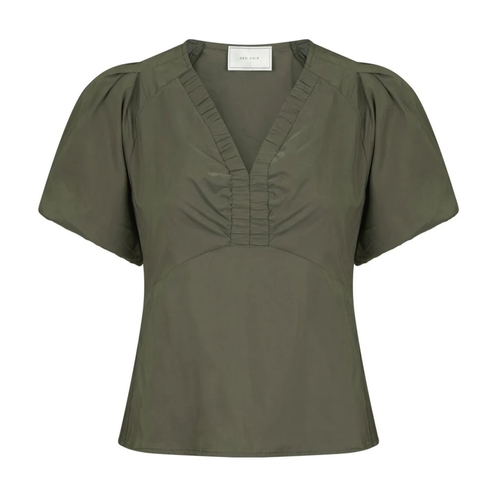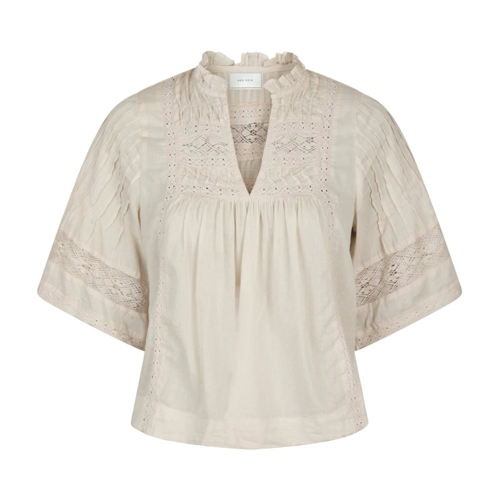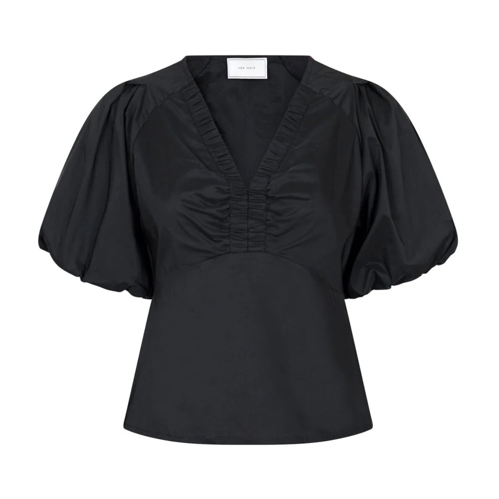 Neo Noir, Blusar & Skjortor , Dam, M, Bomull, Feminin Blus med Korta Puffärmar