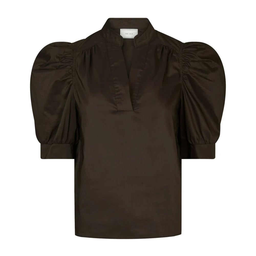 Neo Noir, Blusar & Skjortor , Dam, XS, Bomull, Mörkbrun Blus med Puffärmar