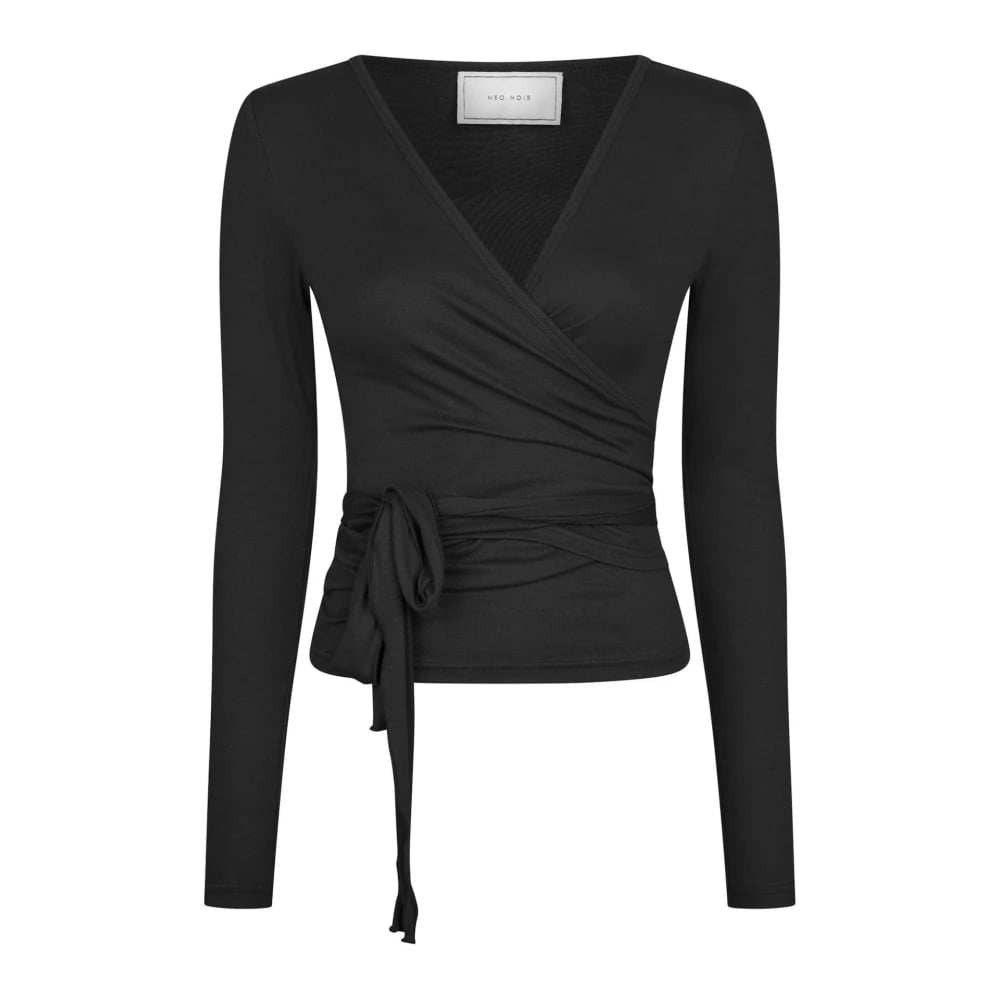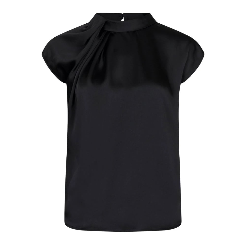 Neo Noir, Blusar & Skjortor , Dam, S, Polyester, Svart Satin Drapy Blus med Knutdetalj