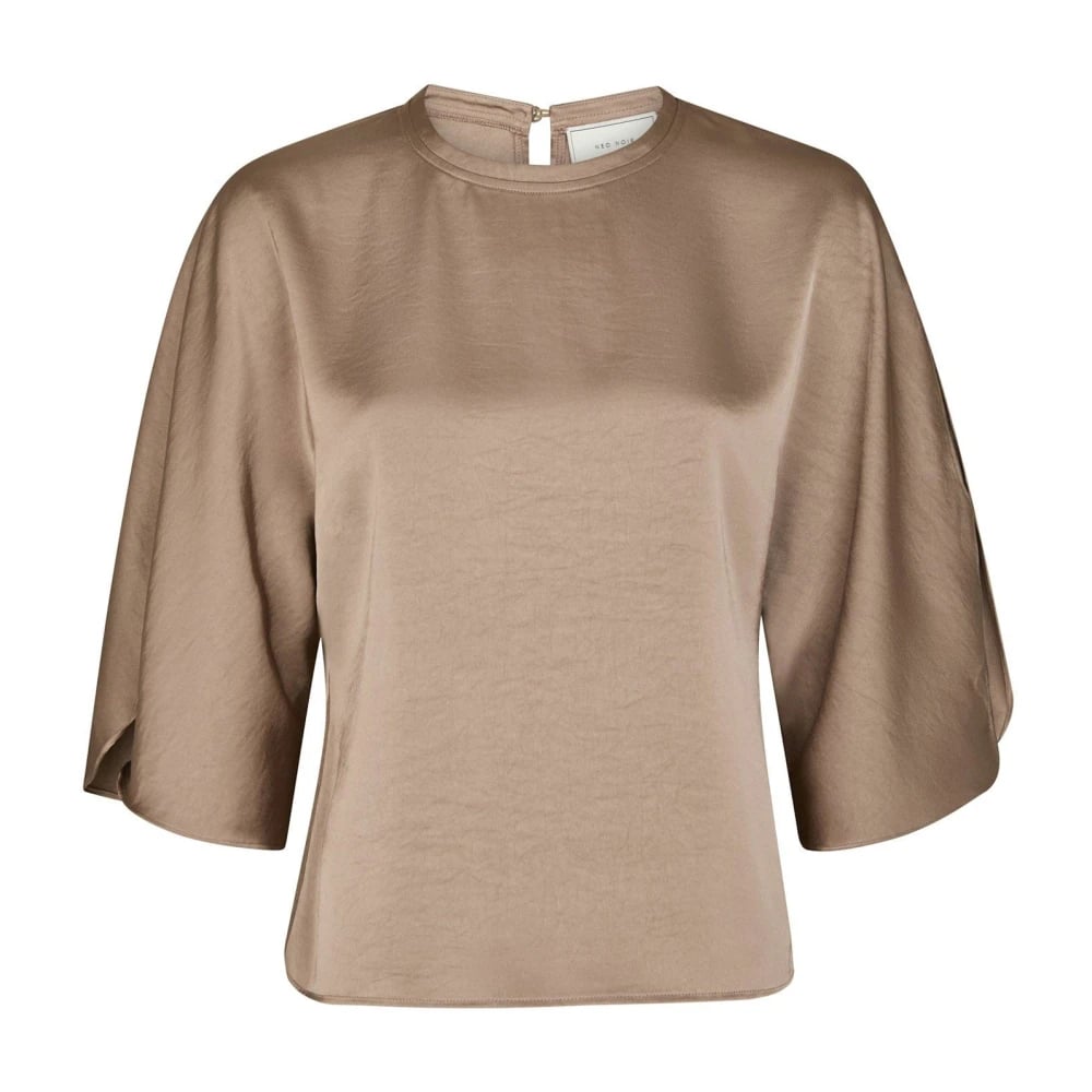Neo Noir, Blusar & Skjortor , Dam, S, Elegant Sateen Blus Dark Taube