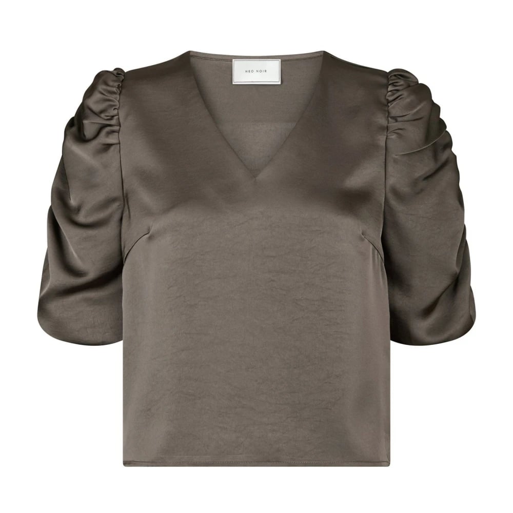 Neo Noir, Blusar & Skjortor , Dam, S, Varm Grå Sateen Blus med Draperade Detaljer