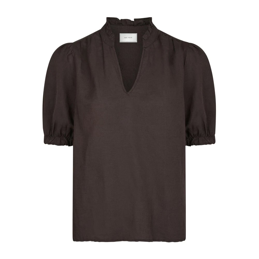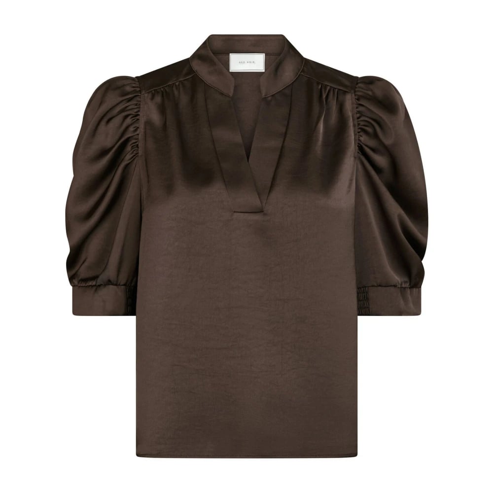 Neo Noir, Blusar & Skjortor , Dam, M, Bomull, Mörkbrun Blus med Puffärmar