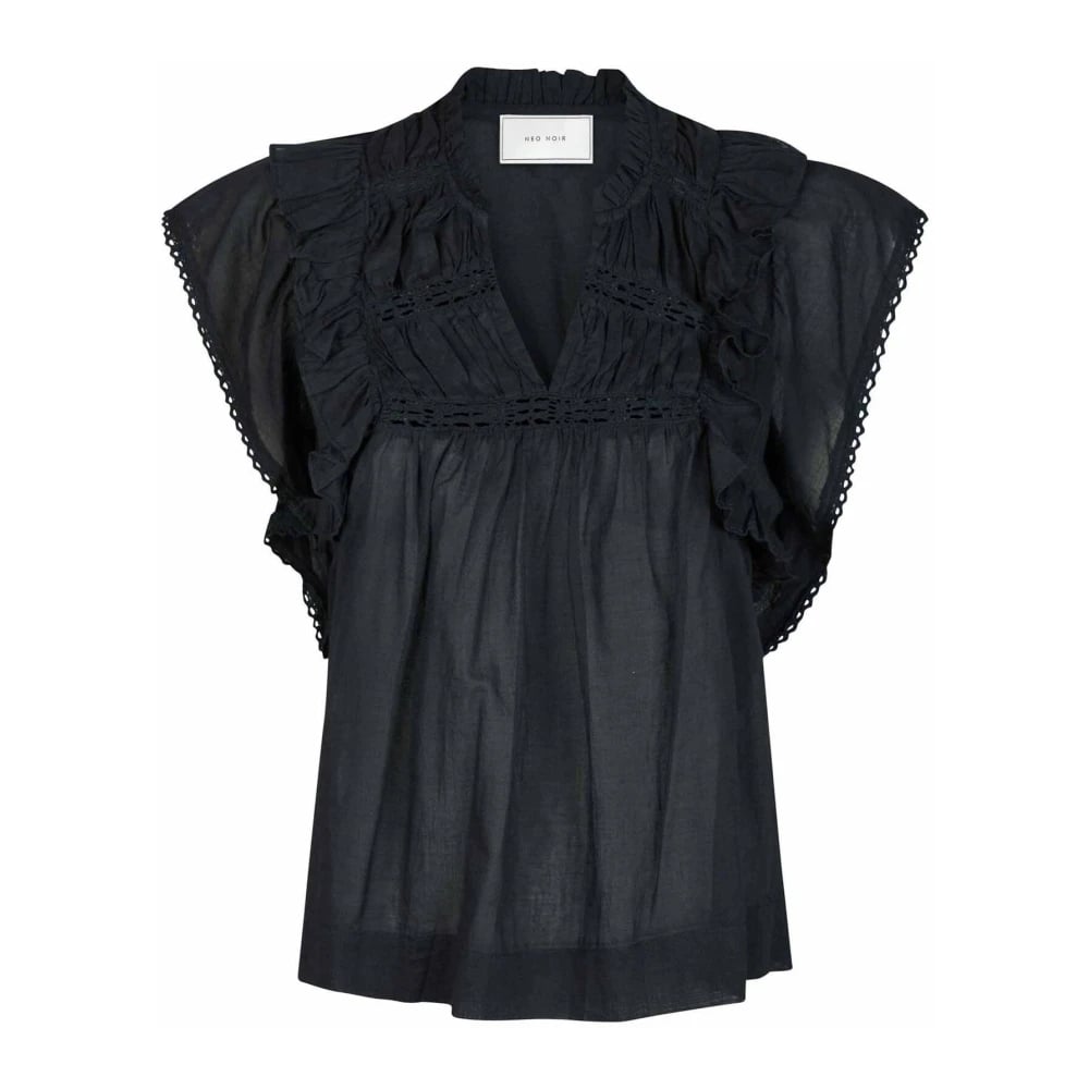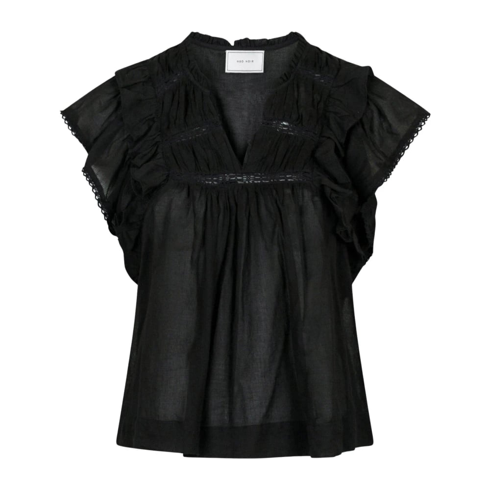 Neo Noir, Blusar & Skjortor , Dam, M, Bomull, Svart Voile Blus med Ruffle Detaljer