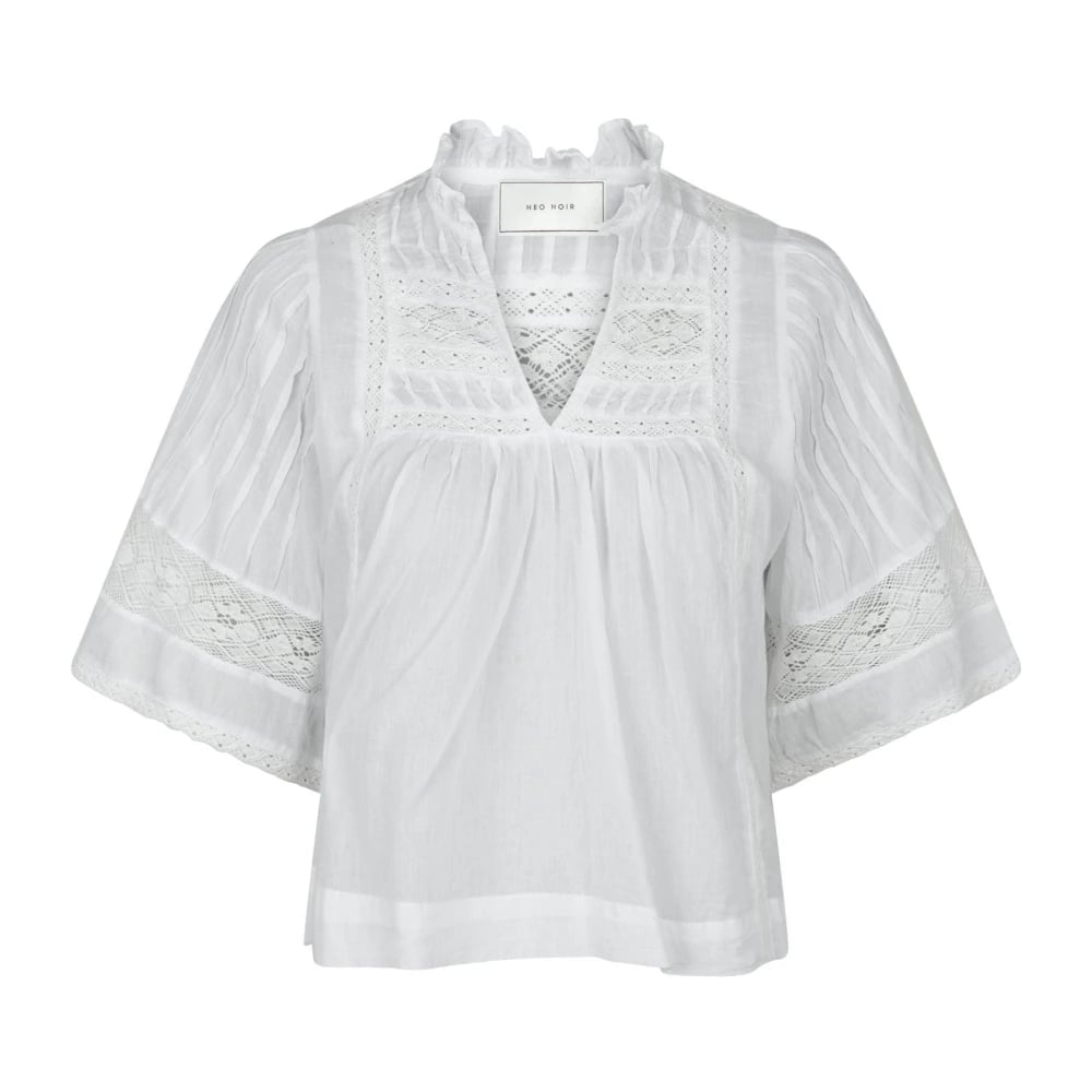 Neo Noir, Blusar & Skjortor , Dam, S, Bomull, Vit Voile Blus med Delikata Detaljer