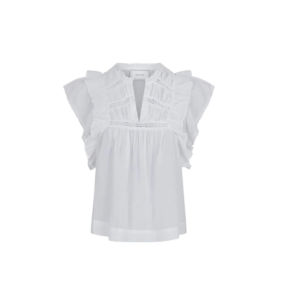 Neo Noir, Blusar & Skjortor , Dam, S, Bomull, Vit Voile Blus med Ruffle Detaljer