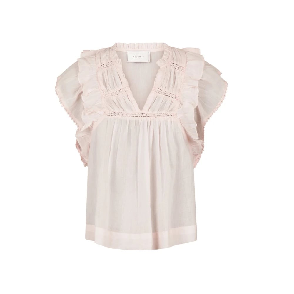 Neo Noir, Blusar & Skjortor , Dam, S, Bomull, Feminin Voile Blus med Volanger