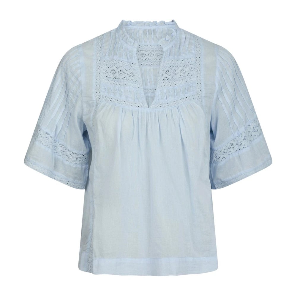 Neo Noir, Blusar & Skjortor , Dam, S, Bomull, Ljusblå Blus med Volangärmar