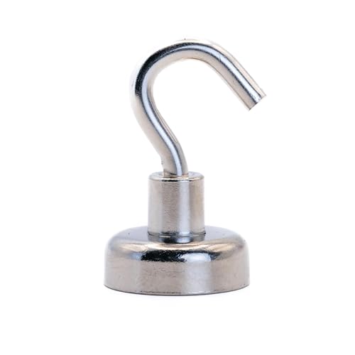 Neodym – klämmagnet med M4 – krok för upphängning, förvaring eller visning av föremål – 20 mm diameter x 34 mm hög – 16,5 kg tåg